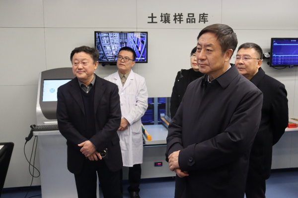 隨后,調研組前往東北亞種質資源研究中心,實地考察了大豆分子設計育種體系、“東生”系列大豆新品種、高通量作物表型組平臺、大豆基因編輯技術以及大豆固相育種芯片研發方面的主要工作進展。